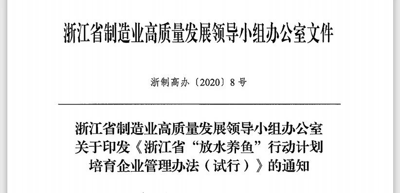 根據(jù)《浙江省“放水養(yǎng)魚”行動(dòng)計(jì)劃》工作要求,重點(diǎn)扶持一批細(xì)分市場(chǎng)有競(jìng)爭(zhēng)優(yōu)勢(shì)、成長性好、具有關(guān)鍵核心技術(shù)的優(yōu)質(zhì)企業(yè),進(jìn)一步鞏固提升浙江省制造業(yè)、民營經(jīng)濟(jì)在全國的領(lǐng)先地位。